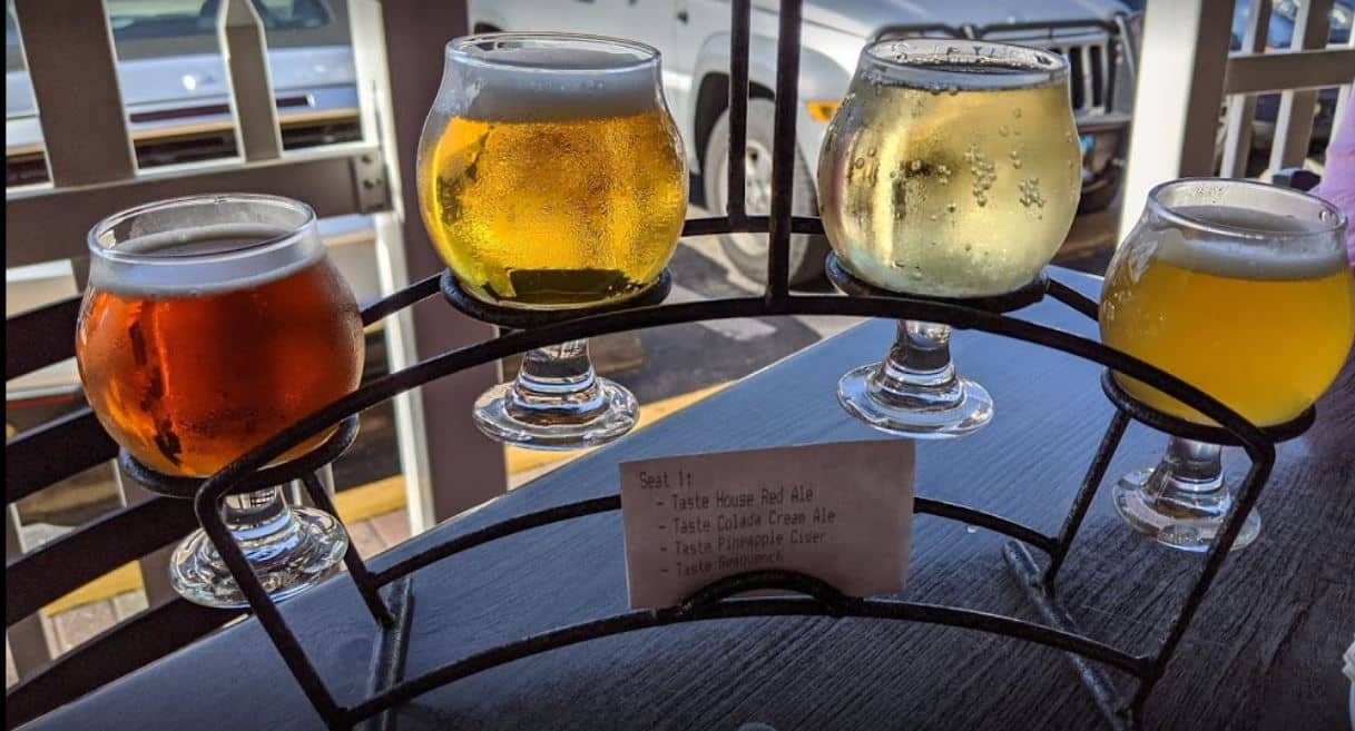 Hidden in San Carlos off Alico, back in the warehouse and industrial area is where you’ll find Palm City Brewing Company. Their fully indoor bar, includes large tables, seats at the bar, some games, and a large projector displaying sports games or popular TV shows. Here they take their beer tasting very seriously and offer guests the option of ordering an 18 glass flight of beers. They take pride in providing quality porters and NE-style IPAs.